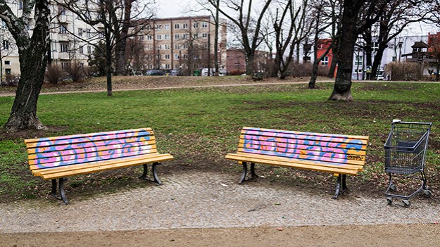 Two Benches and a Shopping Cart